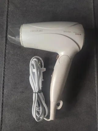 Secador de pelo Cecotec Bamba Ioncare con difusor. - Potencia de 2000W. - Tecnología Ioncare. - Incluye accesorio difusor. Como se puede ver, el secador tiene un defecto en la boquilla, pero funciona perfectamente y con la misma potencia. El difusor encaja perfectamente.