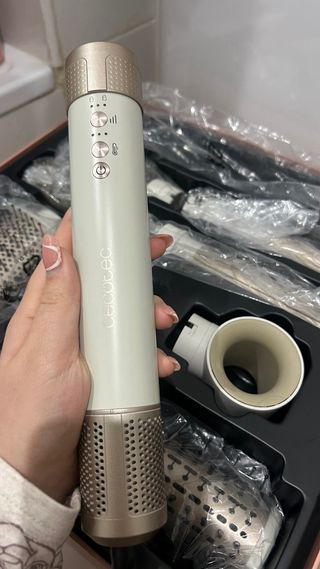 Moldeador de cabello Cecotec Bamba Ceramiccare en color dorado. Incluye 6 cabezales para peinar. - Motor Brushless de 110000 rpm. - Tecnología Coanda para rizos perfectos. - Incluye 6 cabezales para peinar de forma cómoda y precisa.