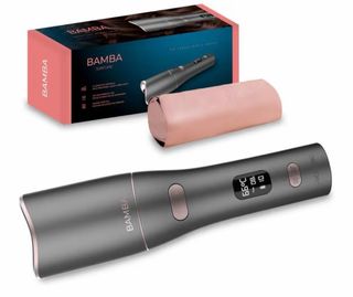 Plancha de pelo inalámbrica BAMBA en color negro y dorado. Incluye su base de carga. - Diseño elegante y moderno. - Portátil y fácil de usar. - Ideal para retoques sobre la marcha.
