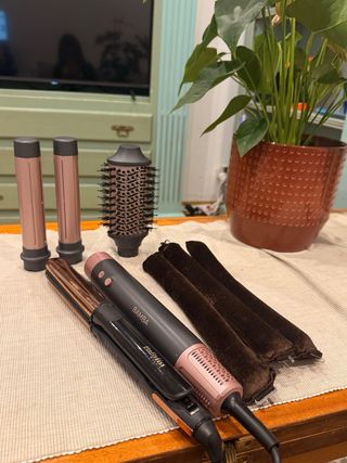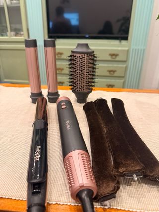 Vendo este pack completo de peluquería en casa, ideal para conseguir cualquier look (liso, ondas o volumen). Todo funciona perfectamente. El pack incluye: 1. Moldeador Cecotec BAMBA (Estilo Airwrap): • Tecnología de aire para moldear sin calor extremo. • Incluye el mango principal, 2 barriles rizadores (izquierda y derecha) para ondas naturales y 1 cepillo redondo para dar volumen y forma al flequillo o puntas. 2. Plancha de pelo BaByliss: • Plancha fina y compacta, ideal para alisar desde la raíz, flequillos o para llevar de viaje. Marca de confianza y muy duradera. 3. Accesorios extra incluidos: • Varillas de terciopelo marrón