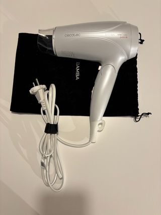 Secador de pelo Cecotec Bamba Ionicare con bolsa de viaje. - Potencia de 2400W. - Tecnología Ionicare. - Incluye bolsa de transporte negra. - Muy nuevo.