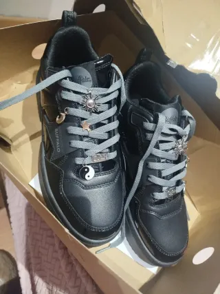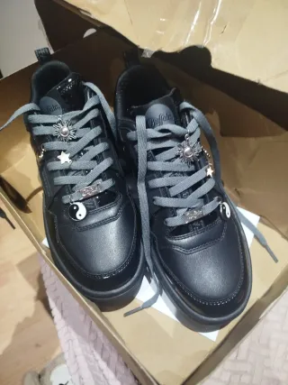 Zapatillas Buffalo a estrenar, talla 39. Un diseño moderno y llamativo. - Cierre con cordones grises. - Adornos colgantes con símbolos de sol, estrella y yin yang. - Detalle brillante en la puntera.