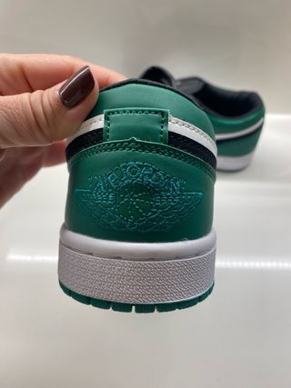 Zapatillas deportivas Jordan de estilo bajo. - Combinación de blanco y verde. - Cierre con cordones negros. - Detalle de logo en la lengüeta.