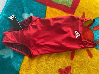 Bañador deportivo de la marca Adidas, completamente nuevo y con sus etiquetas. - Diseño deportivo. - Color rojo vibrante. - Logo de Adidas en blanco. sin estrenar, con protector de plástico, lo vendo porque no puedo devolverlo talla 164cm / 13-14 años / equivalente a talla XS/S mujer