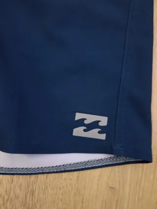 Bañador de la marca Billabong con un diseño llamativo. - Estampado con bloques de color azul y blanco. - Detalle de logo y texto de la marca. - Cintura con cordón ajustable. - Poco uso.
