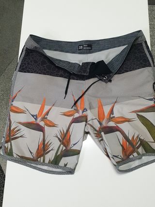 Bañador de la marca Hurley con un diseño vibrante y llamativo. - Talla 33. - Estampado de flores tropicales. - Cintura con cordón ajustable. - Detalle de puntos en los bordes.