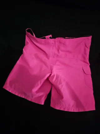 Bañador de la marca Hurley en color rosa. Con muy poco uso. Talla 30 - Diseño con cordones en la cintura. - Bolsillo lateral con cremallera. - Logo de la marca en la pierna.