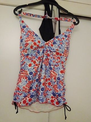 Bañador falda con braguita biquini muy original talla M grande más bien S tirante cuello tal como seve muy original