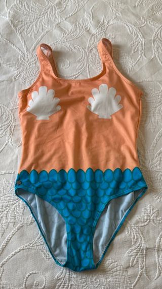 Precioso bañador de una pieza de la marca Kling. Con un diseño de escamas de sirena en la parte inferior. Tiene un bonito diseño de conchas en la parte superior. - Diseño original de sirena. - Talla 3 - Perfecto para verano. poco uso me queda grande