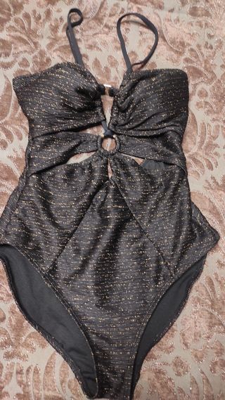 Bañador negro calado,marca H&M,talla S. Espalda al aire,atado con cuerdas al cuello y espalda.