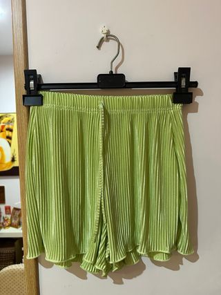 A estrenar Conjunto playero de tela plisada con cordón. - Diseño plisado. - Cintura con cordón ajustable. - Estilo ligero y vaporoso.