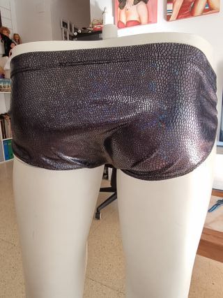 Bañador de lycra con un diseño llamativo. - Tejido brillante con textura de serpiente - Cintura elástica para un ajuste cómodo. -Hay talla L y M