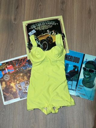 Conjunto de bañadores de Lycra de los años 80. Piezas únicas con diseños vibrantes. - Estilo retro. - Tejido elástico. - Ideal para coleccionistas.