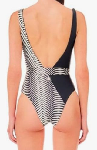 Precioso bañador de una pieza de la marca Liu Jo, talla L. Es un diseño elegante y favorecedor. - Diseño bicolor: negro y estampado en blanco y negro. - Lazo a la cintura saque se puede quitar o poner. - Escote pronunciado.