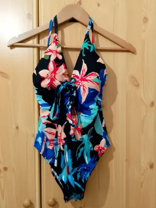 Preciosa pieza de baño, sin estrenar. Es un bañador de una sola pieza con un estampado floral multicolor. - Diseño halter. - Estampado llamativo. - Ideal para el verano.