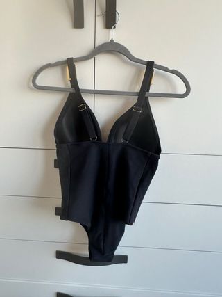Bañador Calzedonia negro y blanco de topos. Muy poco uso como se puede observar. Puesto dos veces. Sienta muy bien. Buenas calidad. Es una 85.