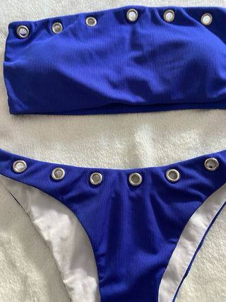 Conjunto de bañador de dos piezas. - Parte superior tipo bandeau. - Braguita de corte alto. - Detalle de ojales metálicos en ambas piezas.