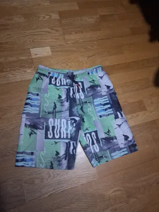 Conjunto de dos bañadores para niño, ideales para el verano. Cada bañador, 10eur - Bañador azul con estampado de tiburones, palmeras y detalles gráficos. BOBOLI - Bañador azul marino con estampado de estrellas de mar en verde. PEPE JEANS - Talla 14-16 años.