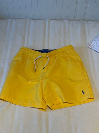 Bañador de niño de la marca Polo Ralph Lauren. - Color amarillo vibrante. - Detalle del logo de Polo Ralph Lauren bordado en el lateral. - Cintura elástica con cordón ajustable para mayor comodidad.