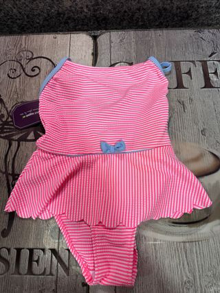 Bañador de niña con un divertido estampado. - Diseño con dinosaurios, helados y donuts. - Tirantes cómodos. - Tejido resistente (aquaresist). Creo que es la talla 4-5 le quite la etiqueta porque molestaba. Poco uso