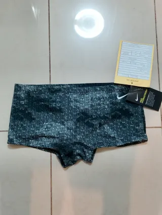 Bañador tipo bóxer de la marca Nike, modelo Hydrastrong NUEVO; - Diseño estampado en tonos oscuros. - Logo de Nike en blanco. - Tejido resistente al cloro. La talla es 30, pero también dice "Mediana". Así que podría ser talla de niño, no tengo ni idea. Por favor, revise todas las fotos, ya que no se aceptan devoluciones. Hago envios con Wallapop 👍