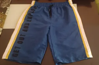 Bañador de niño con un diseño deportivo y moderno. - Color azul con detalles laterales en blanco y amarillo. - Inscripción GET OUT AND EXPLORE en un lateral. - Cintura elástica con cordón ajustable.