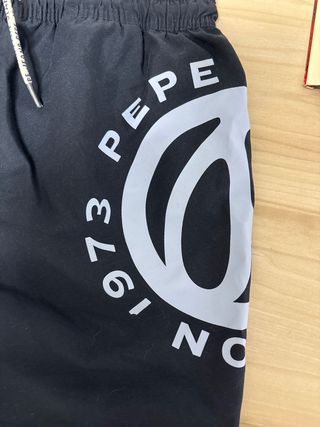 Bañador de la marca Pepe Jeans en color negro. Presenta un diseño moderno y cómodo. - Cintura elástica con cordón ajustable. - Detalle de logo en el lateral.