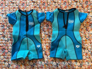 Bañador de neopreno para niño con diseño de rayas. - Cremallera frontal para facilitar su uso. - Logo de Arena en la parte delantera y trasera. - Diseño Water Tribe. Edad: 1-2 años Precio por 2 bañadores 15€