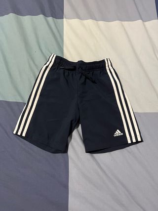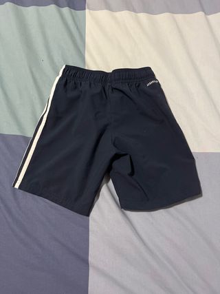 Pantalones cortos deportivos de Adidas. - Diseño con tres rayas blancas laterales. - Cintura con cordón ajustable. - Logo de Adidas en la pierna derecha. Para niño Posee redecilla por lo tanto es valido como bañador