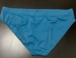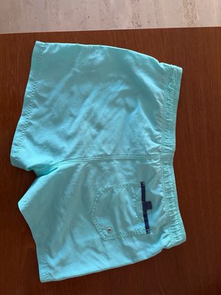 Bañador corto azul verdoso, está la goma rota