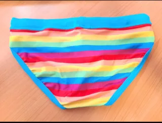 Se vende bañador para hombre o calzoncillo de natacion multicolor, con estampado de arcoiris, talla L. Se trata de ropa de baño de cintura baja con cordón blanco. Abstenerse curiosos por favor, solo vendo el producto. No enseño fotos con el puesto ni nada. Repito solo vendo producto. Medidas: cintura: 86-91 cm. y cadera: 102-107 cm. La medida de lado a lado es 36,5 cm. Aunque en la talla ponga la L es mas bien una M, por lo que si utilizas una M te quedará bien. Material: poliester. Cierre: con cordón. Por favor, solo contactadme a traves de este chat.