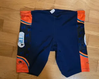 Bañador de natación de la marca Turbo. - Diseño con paneles laterales en naranja y azul. - Cordón ajustable en la cintura.
