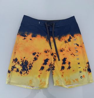 Bañador Quicksilver. Multicolor con un diseño llamativo. Bolsillo lateral. Cierre con velcro y cordón azul. Talla: 34 (imagen)