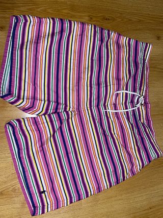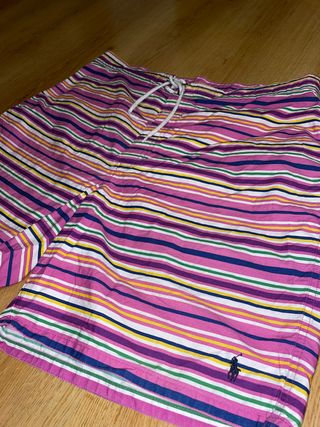 Bañador de hombre Polo Ralph Lauren, talla M. Es un bañador colorido y llamativo. - Diseño de rayas horizontales. - Cintura elástica con cordón. - Tejido ligero.
