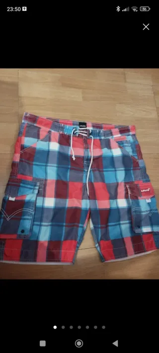 Bañador Talla 46. Bañador Talla 46-48 Bañador XL. Bañador XXL. Bañador hombre. Bañador corto Levis de hombre, talla XL, en un colorido estampado multicolor. Es un bañador de estilo casual, ideal para el verano. - Tiene bolsillos laterales. - Cierre con cordón. - Diseño a cuadros. Bañador Levis XL. Equivale a una talla 46 holgada. Adjunto fotos Rebajado. Sin devolución.