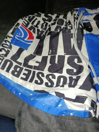 Poquito uso. Muy chulo diseño con aire surfero. Talla grande. Tiene goma alrededor de la cintura y cordón para ajustar con chulo diseño. No negociable.