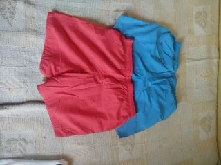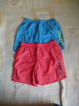 2 bañadores de Decathlon. Con forro interior. Cintura de goma ajustable. El naranja es más largo. Talla S niño 12/14 años