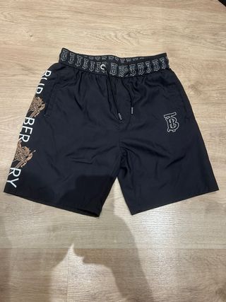 Bañador de la marca Burberry en color negro con detalles de logo. - Cintura elástica con cordón. - Diseño con logo TB en la pierna derecha. - Estampado Burberry y motivo floral en el lateral izquierdo.