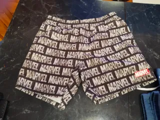 Bañador con estampado de Marvel en tonos negros y grises. Ideal para hombres o jóvenes. - Cintura elástica con cordón. - Diseño llamativo con el logo de Marvel.