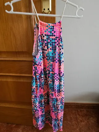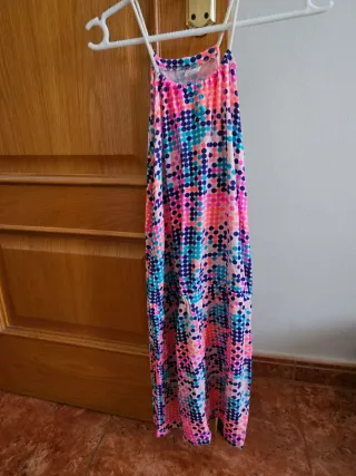 Vestido playero de la marca Roxy con un estampado vibrante. - Diseño con tirantes. - Estampado de puntos en varios colores. - Talla 14/XL/LG