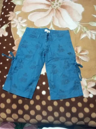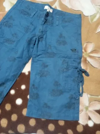 Pantalón de mujer Roxy. Perfecto para ponértelo con el bañador. Marca una talla 11 (pero es aprox una talla 38) 46 cm de cintura y 26,5cm de largo. Se cierra con un clip como se ve en al foto. Tiene un bolsillo en la parte trasera.