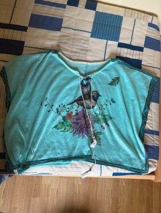 *La marca no corresponde con la prenda, pero era campo obligatorio, fue comprado en la playa. Poncho holgado para la playa con un diseño colorido. Ideal para llevar sobre el bañador. Muy poco usado. - Estampado de pájaros y flores. - Tejido ligero y fluido.