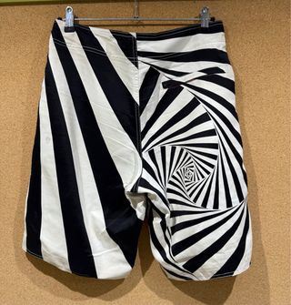 Bañador con un llamativo diseño geométrico en blanco y negro. - Estampado de espiral y líneas. - Cintura con cordones para ajuste.