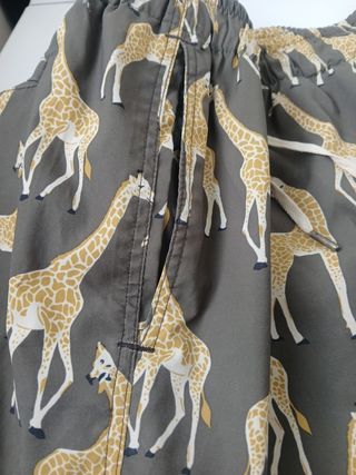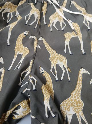 Bañador con estampado de jirafas sobre fondo verde. - Diseño divertido con jirafas. - Cintura elástica con cordón. - Bolsillo lateral.