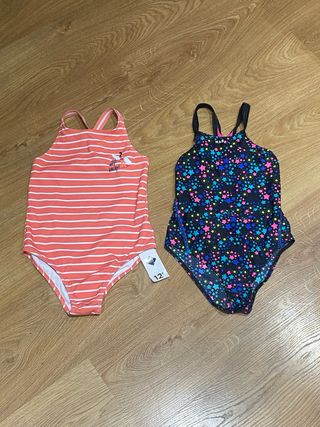 Dos bañadores talla 8-9 y 9-10. Nuevos. Sin estrenar. Los dos por 10€. El de estrellas lo compré en Decathlon y el de rayas en Carrefour