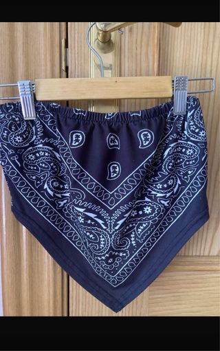 Top estilo bandana con estampado paisley. - Diseño llamativo en negro y blanco. - Talla Xs