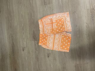 Pantalón corto con un llamativo estampado de bandana. - Diseño de bandana en naranja y blanco. - Cintura con cordón ajustable.