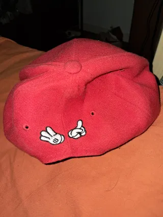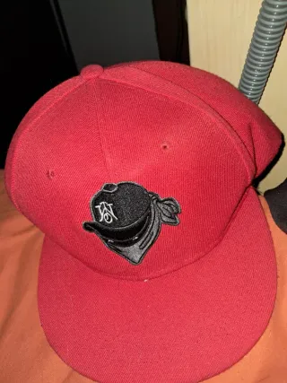 Gorra de color rojo con un diseño llamativo en la parte frontal. - Logo bordado con una bandana y las iniciales JN. - Estilo snapback. - En buen estado.