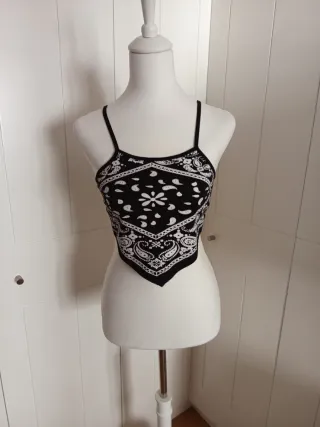 Top Bershka bandana blanco y negro Talla XS
