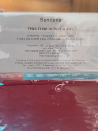 Bandana oficial del videojuego Days Gone. Un accesorio con el logo del juego. - Diseño con el logo de Days Gone. - Color rojo vibrante.